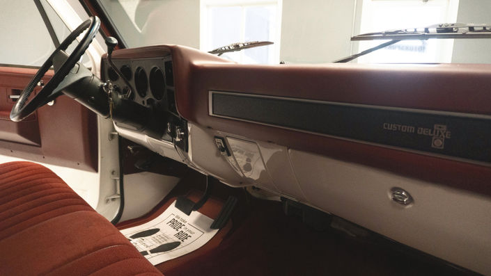 Inside, the red interior has been fully detailed and refreshed with a velour headliner, new leather steering wheel, and clean trim throughout. Other upgrades include tilt steering, rear window tint, and new wipers, door lock knobs, and floor mats. For entertainment, itโs been outfitted with a retro-style Bluetooth stereo and PowerBass S-Series speakers (6x9โ 50W RMS behind the seat, 3.5โ 30W RMS in-dash), giving it crisp, modern sound without losing that vintage look.
