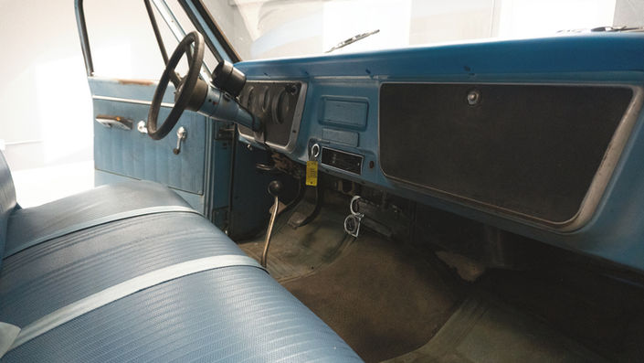 Inside, you’ll find a clean blue interior with a re-upholstered dash and bench seat. It also features added water temp, oil pressure, and RPM gauges, along with functioning lights, wipers, and emergency brake for reliable driving.